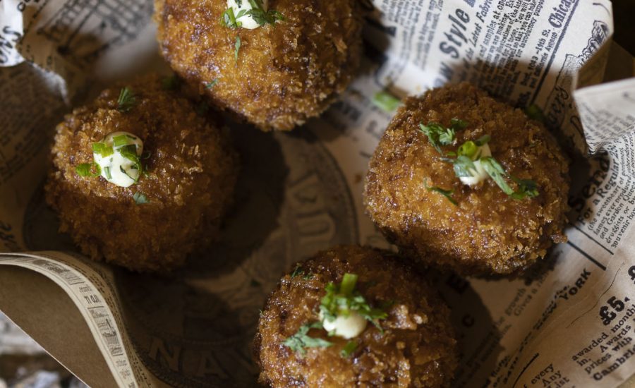 Cuatro deliciosas croquetas de cochinita pibil. ¡Un entrante indispensable!
