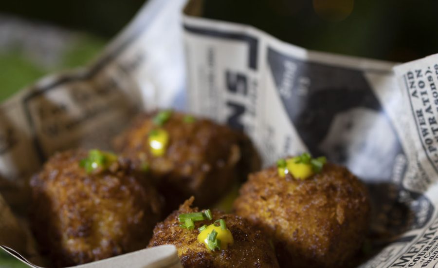 Cuatro irresistibles croquetas crujientes con toques dulces y ácidos que se fusionan en cremosos y deliciosos bocados. Acompañadas de una suave salsa de miel y mostaza. ¡Para comer con las manos!