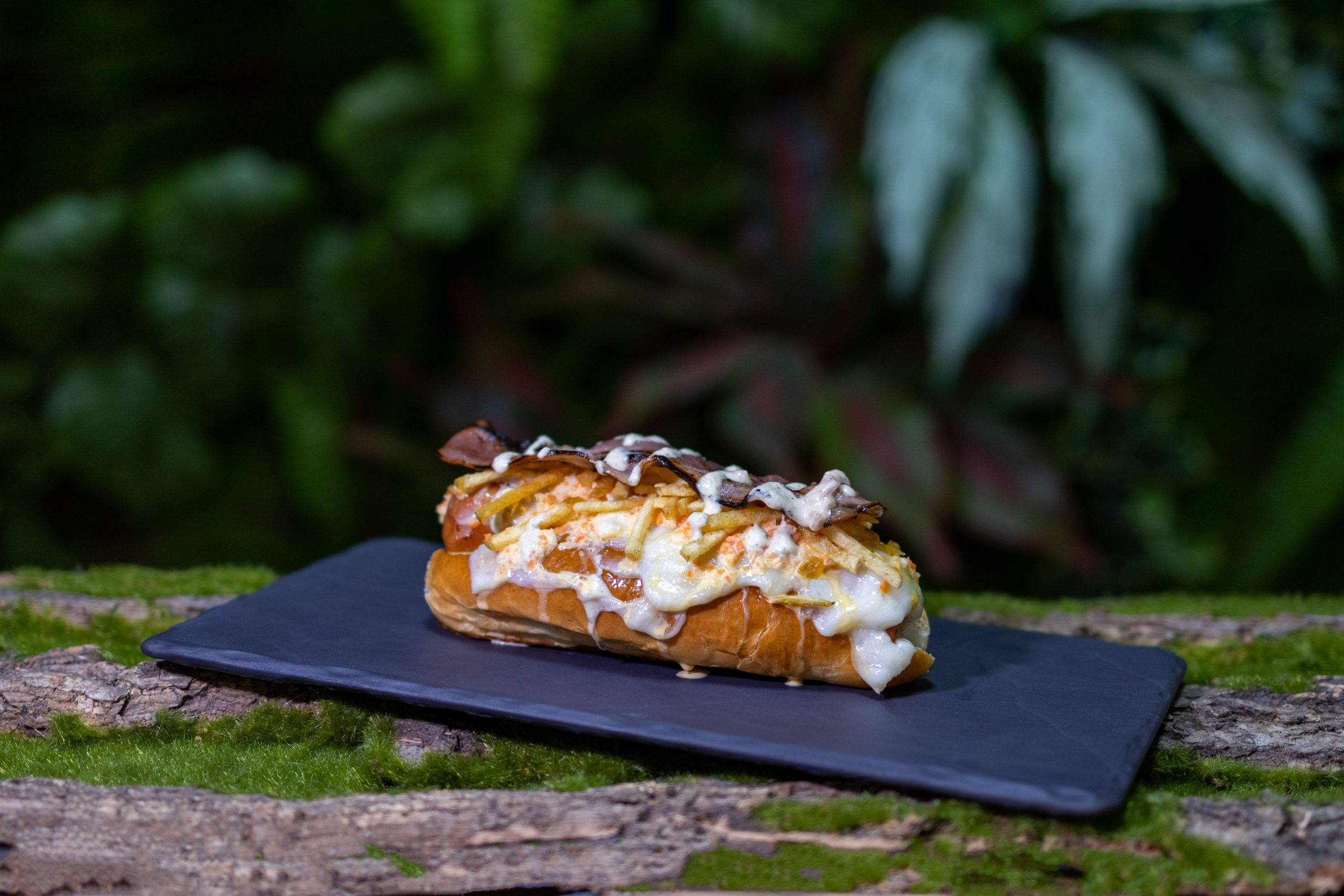 Una combinación de irresistible salchicha premium, generosa capa de queso fundido, fresca ensalada de col, cebolla crujiente y salsa bacon entre suave pan.